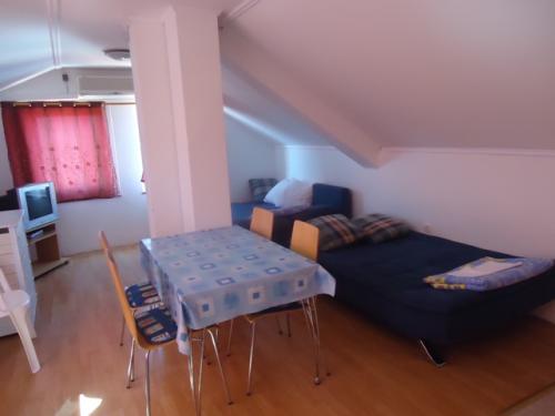 Wohnfläche ist 50 m2. Die Wohnung hat ein Schlafzimmer, Wohnzimmer, Bad, Küche. Die Wohnung ist mit allen Küchengeräten ausgestattet. Die Wohnung ist modern eingerichtet. Es verfügt über Klimaanlage, Sat-TV, Kaffeemaschine, etc. Bettwäsche und Handtücher sind ebenfalls in der Wohnung gefunden. Parkplatz für Gäste auf dem Hof ​​zur Verfügung gestellt.